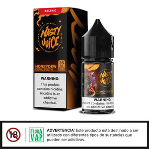 Disfruta de la refrescante Sal de Nicotina Nasty Honeydew Devil Teeth, presentada en un formato de 30 ml con una concentración de 35 mg de nicotina. Este e-líquido ofrece una experiencia de vapeo suave y placentera, ideal para aquellos que buscan un perfil de sabor afrutado y refrescante. Honeydew Devil Teeth captura la esencia del melón honeydew maduro, combinando su dulzura natural con un toque fresco que revitaliza cada calada. Perfecto para los amantes de los sabores frutales.
